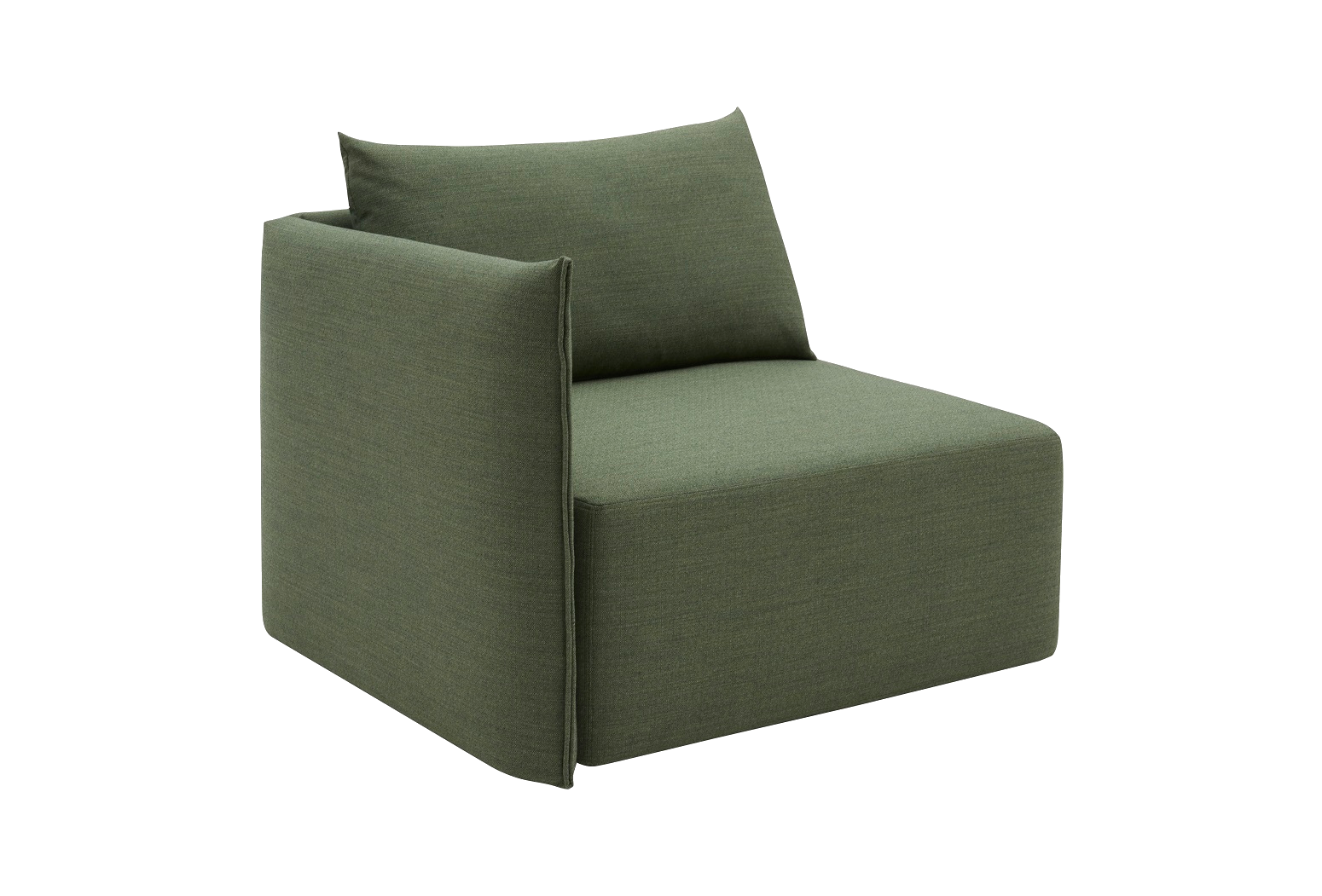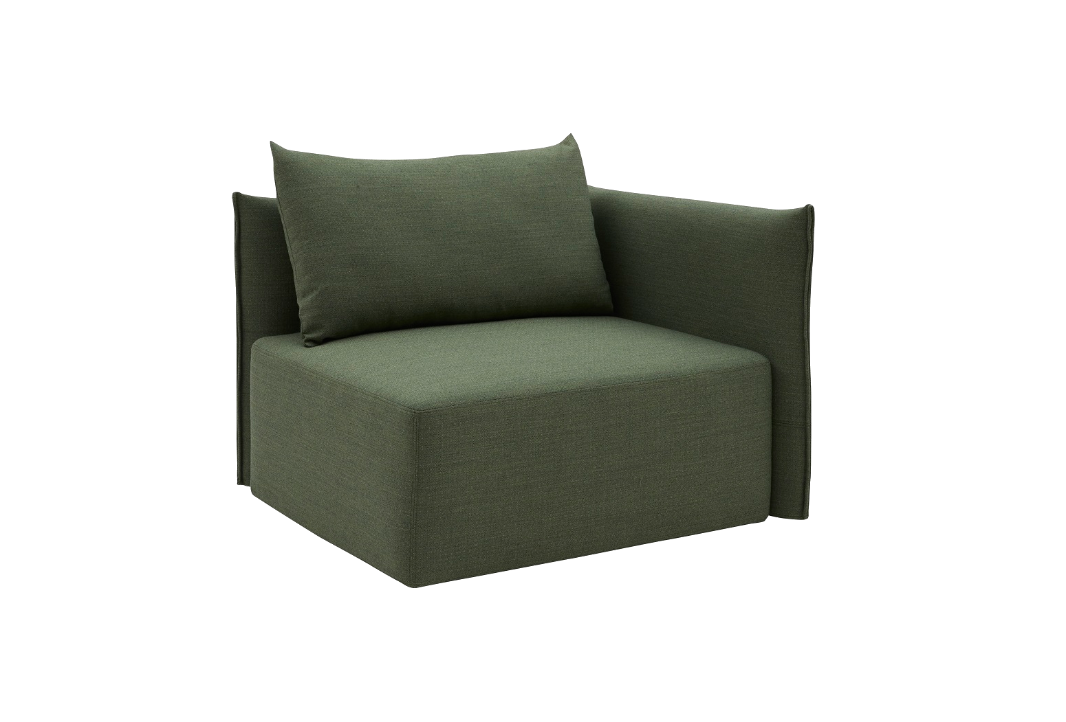 The minimalistic and sophisticated look of the modular sofa CAPE adds a modern touch to any space, and with a number of modules to choose from you can design it to fit your room perfectly. The backrest and armrest of each element is in one piece, wrapping around the large cushion. The slightly protruding seams running down the armrest adds a cosy and elegant touch and accentuates the simplistic and straight lines of the sofa.