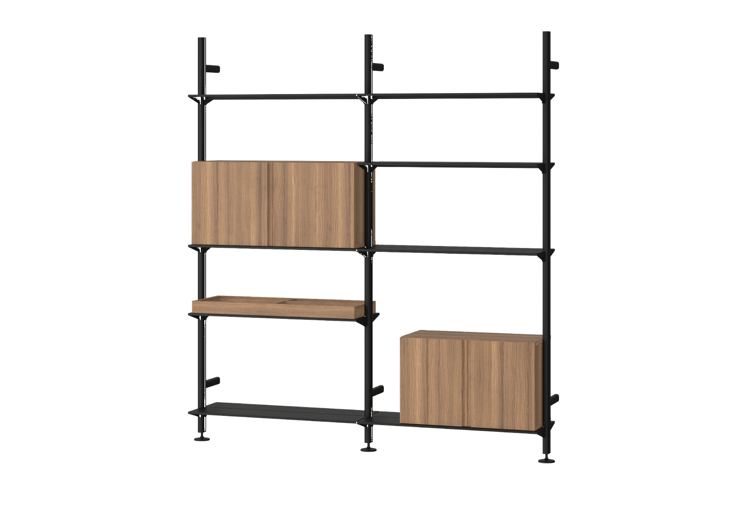 It’s the 2020’s, technology and materials have evolved but also people’s habits and needs. Architect Anna von Schewen and industrial designer Björn Dahlström took on the challenge to let the Pira respond. In all senses. Pira G2 is a metallic work of art that creates a centre-piece wherever it stands. Yet each shelf carries up to 50 kg, thanks to its sheet-steel construction with an integral ridge. Or indeed, 350 kg in each section. Enough for life’s treasures. Or necessities. Or both. Pira G2 is the sum of many parts. An interlocked series of joints, poles, flats and triangles, each no longer than a metre yet extendable to reach most ceilings from all floors. With machined tolerances down to 0.02mm, yet all as rugged as the machines that cut them.