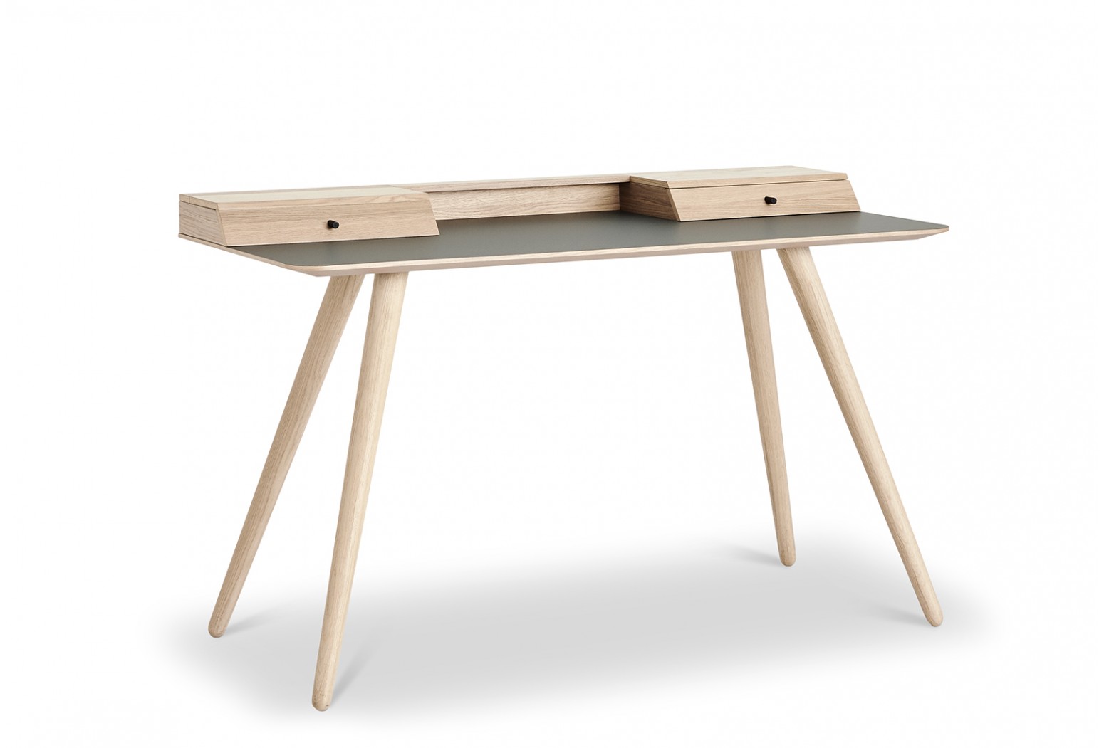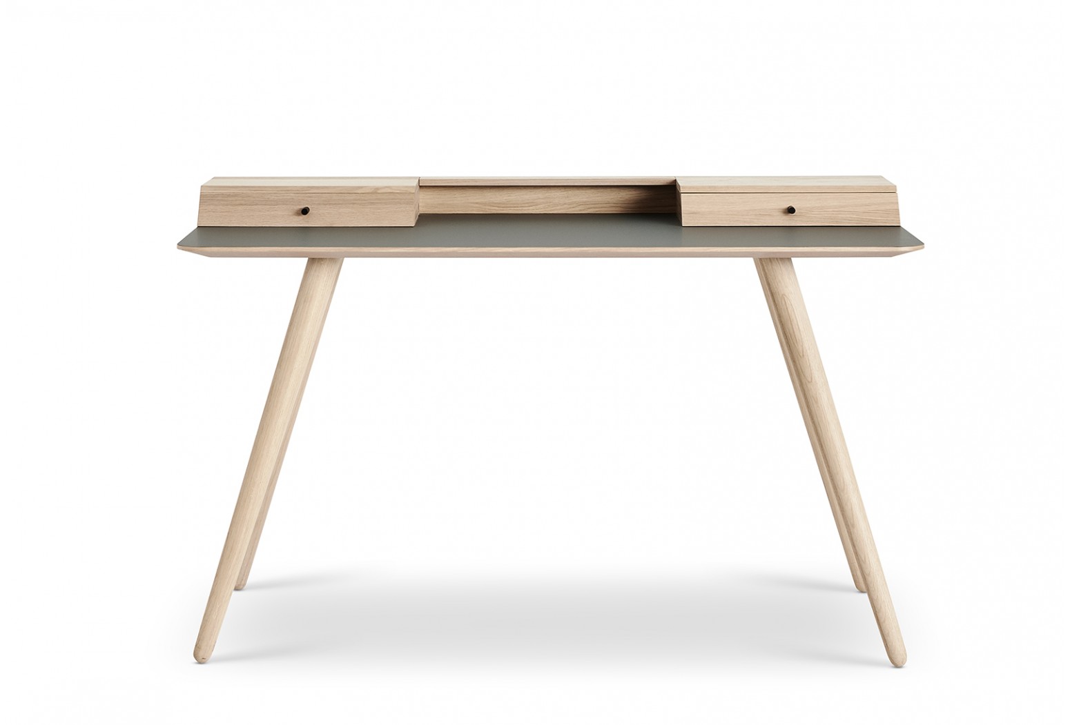 A simple desk in a beautiful clean, Scandinavian design. Appropriately chosen combinations of materials and details. Furniture that will make your home office very pleasant and elegant.