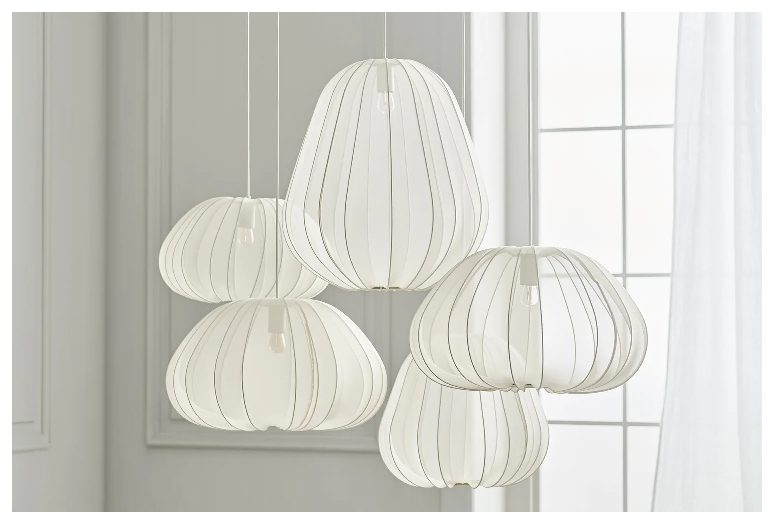 The elegant and sheer fabric adds a light, playful effect to the Balloon lamp and reflects the light in an almost hypnotic way. Balloon features precise, hand-sewn details all down the side – details that have required a special technique and a very steady hand.