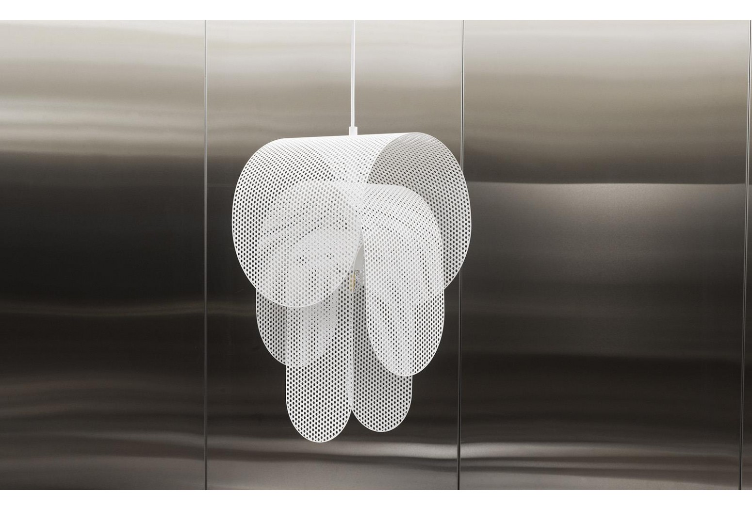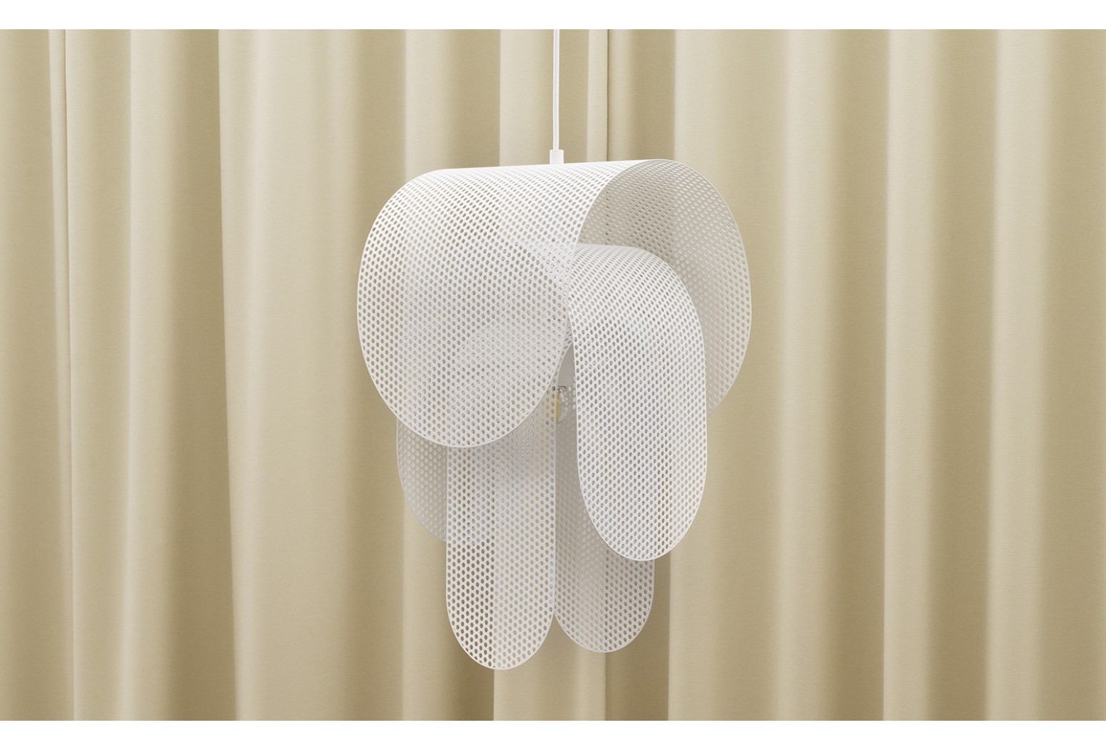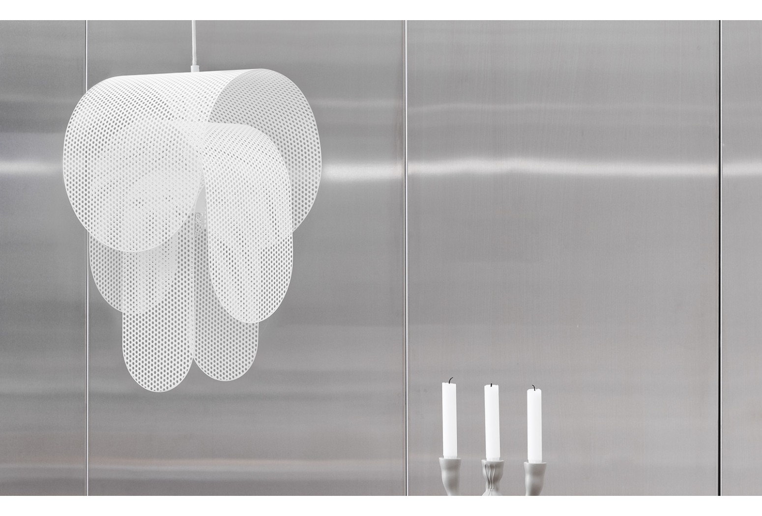The Superpose lamp shines a soft light outwards and a direct light downwards while its perforated pattern casts lively shadows on its surroundings. Let the lamp stand out above a table, use it as mood lighting in a corner or as an impressive ceiling lamp.
