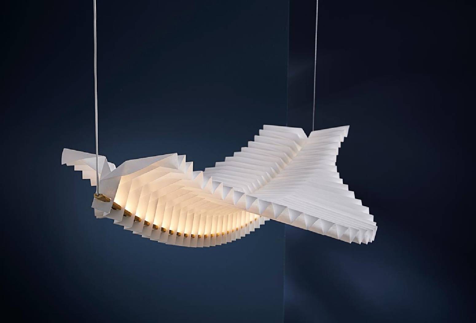 Sora is a floating sculptural statement piece of simply epic proportions. Handmade using traditional Japanese origami construction techniques, Sora succeeds in exuding a serene, radiant aura.