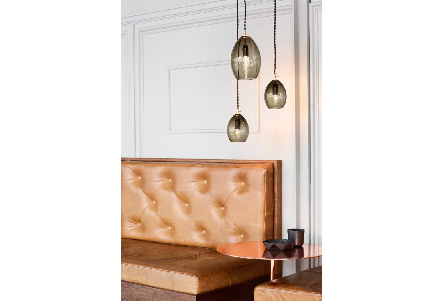 Read moreUnika is a mouth blown series of small, glass pendant lamps, originally designed for the Restaurant Grønbech and Churchill in Copenhagen. Its simple base is made of solid brass; a detail that gives the lamp a clean, industrial look, making a sharp contrast to the fragile, handmade glass lamp shade. The shade is available in two sizes: 135 mm and 200 mm (height), and hangs from a twisted fabric wire.