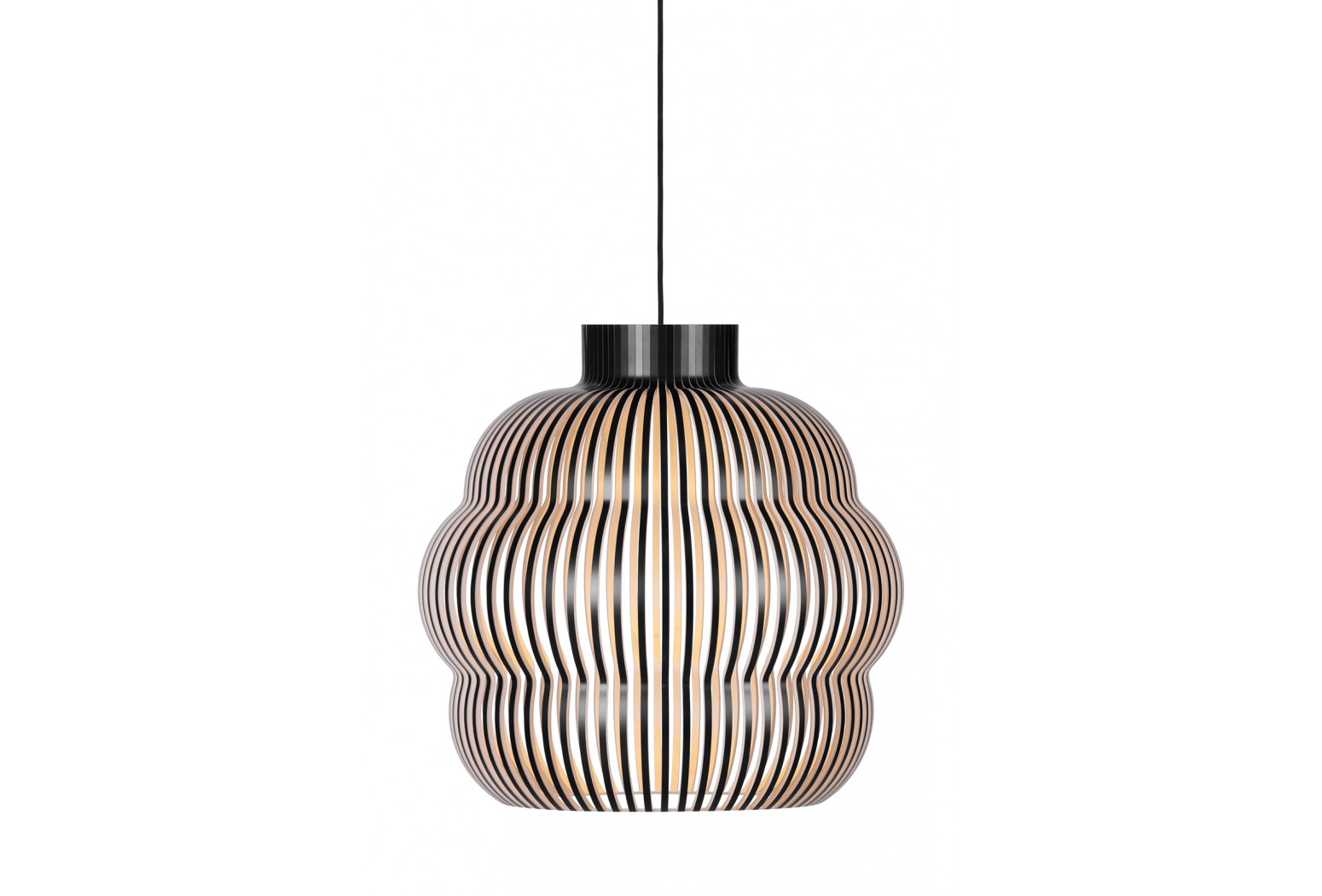 The Secto design lamp collection is designed by the Finnish interior architect Seppo Koho. The shades made of laminated birch slats connected by rings of aircraft plywood. The shades are available in birch, white laminated birch and black laminated birch. Shades are handmade by higly skilled Finnish craftsmen.