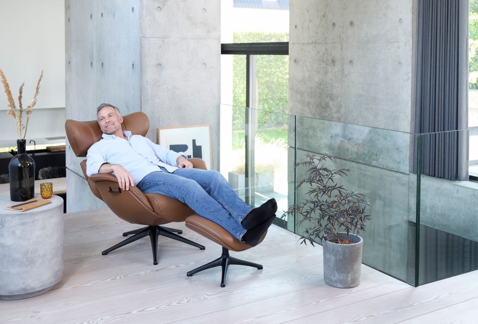 The footrest will ensure you a calm place to relax and unwind. The headrest is adjustable in height and angle, to get the best position for reading, watching TV or relaxing. The composite shell of the chair is available in black composite or as fully upholstered.