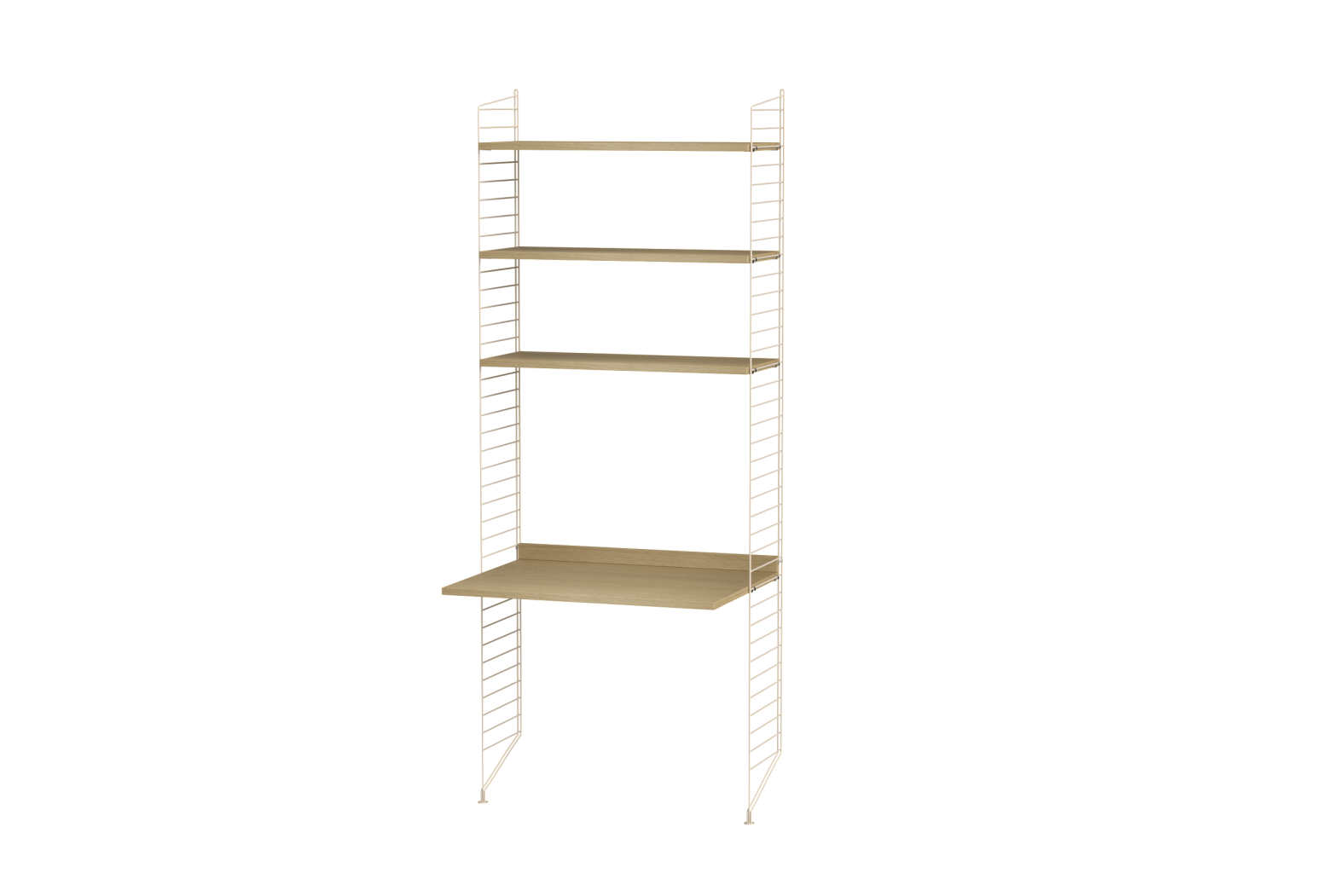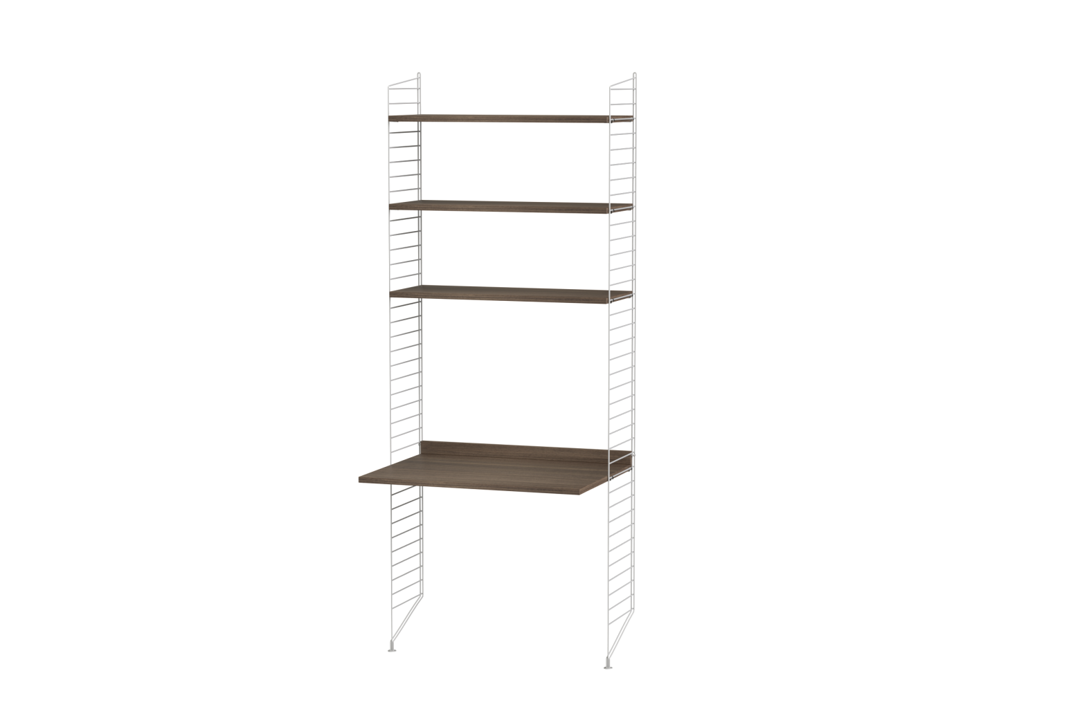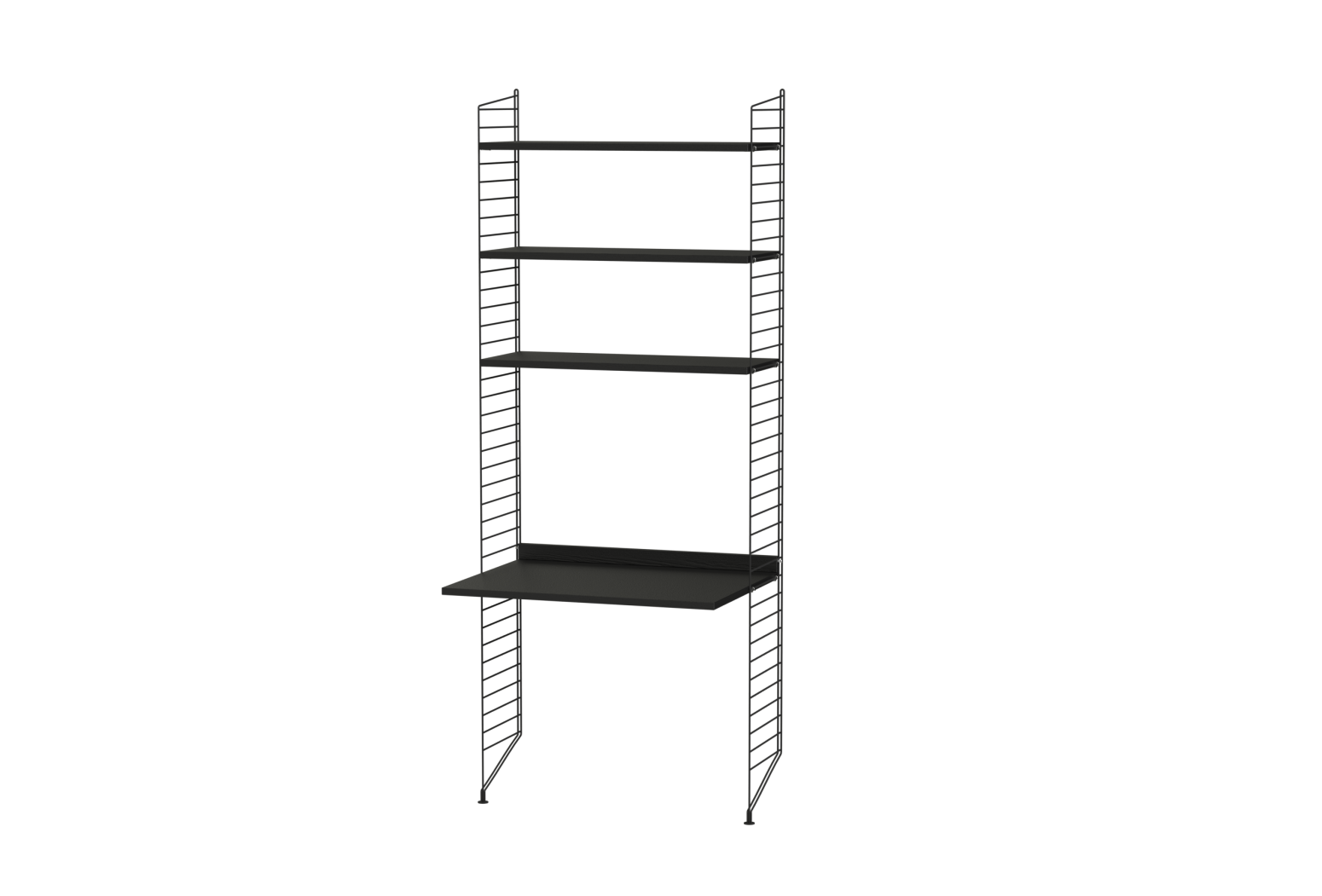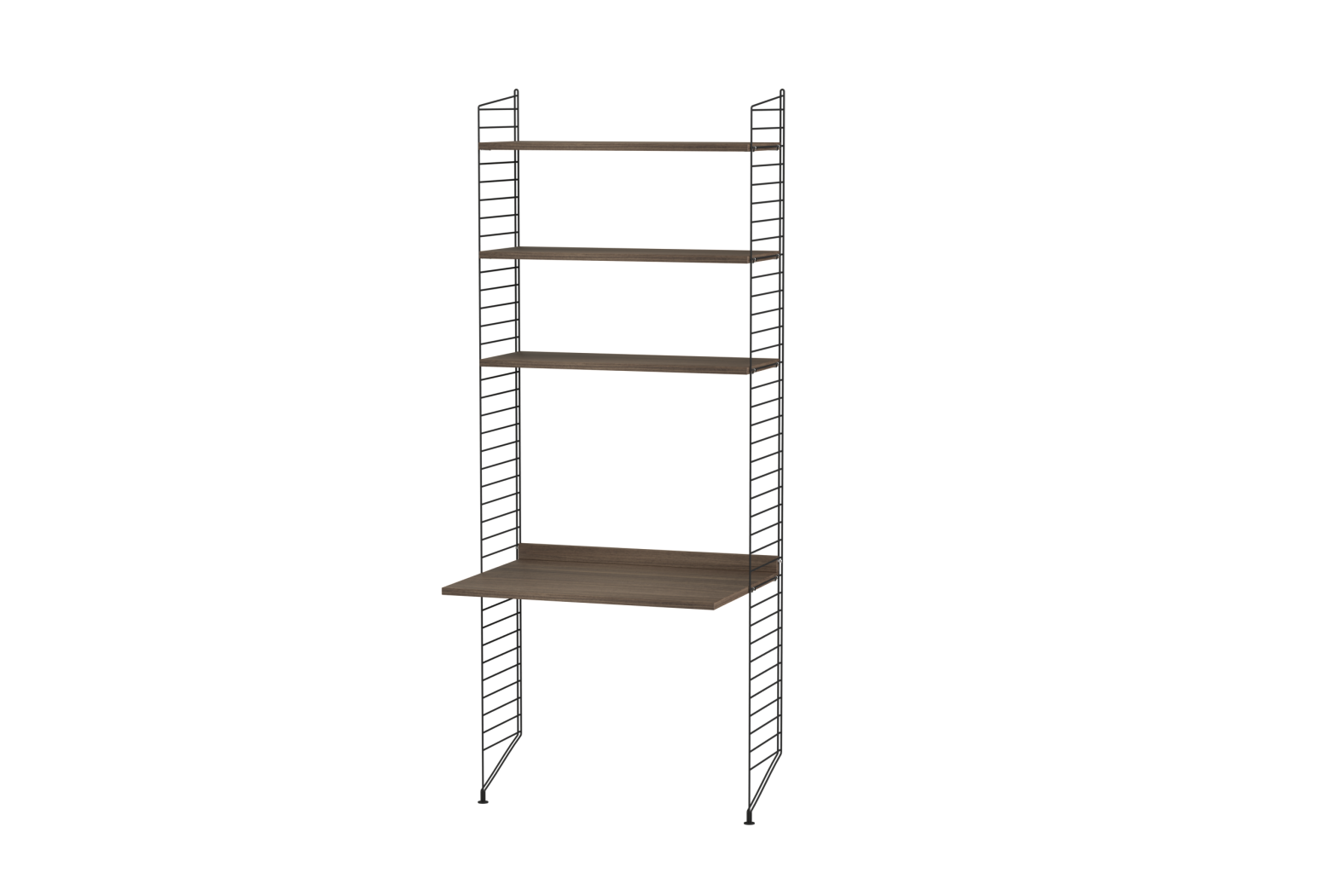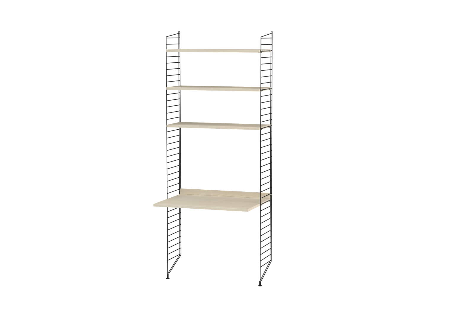 Prepared assembly from the String system. Complete set of elements according to the display and list. From the menu it is possible to choose the material design of wooden parts and the shade of painting metal struts.
