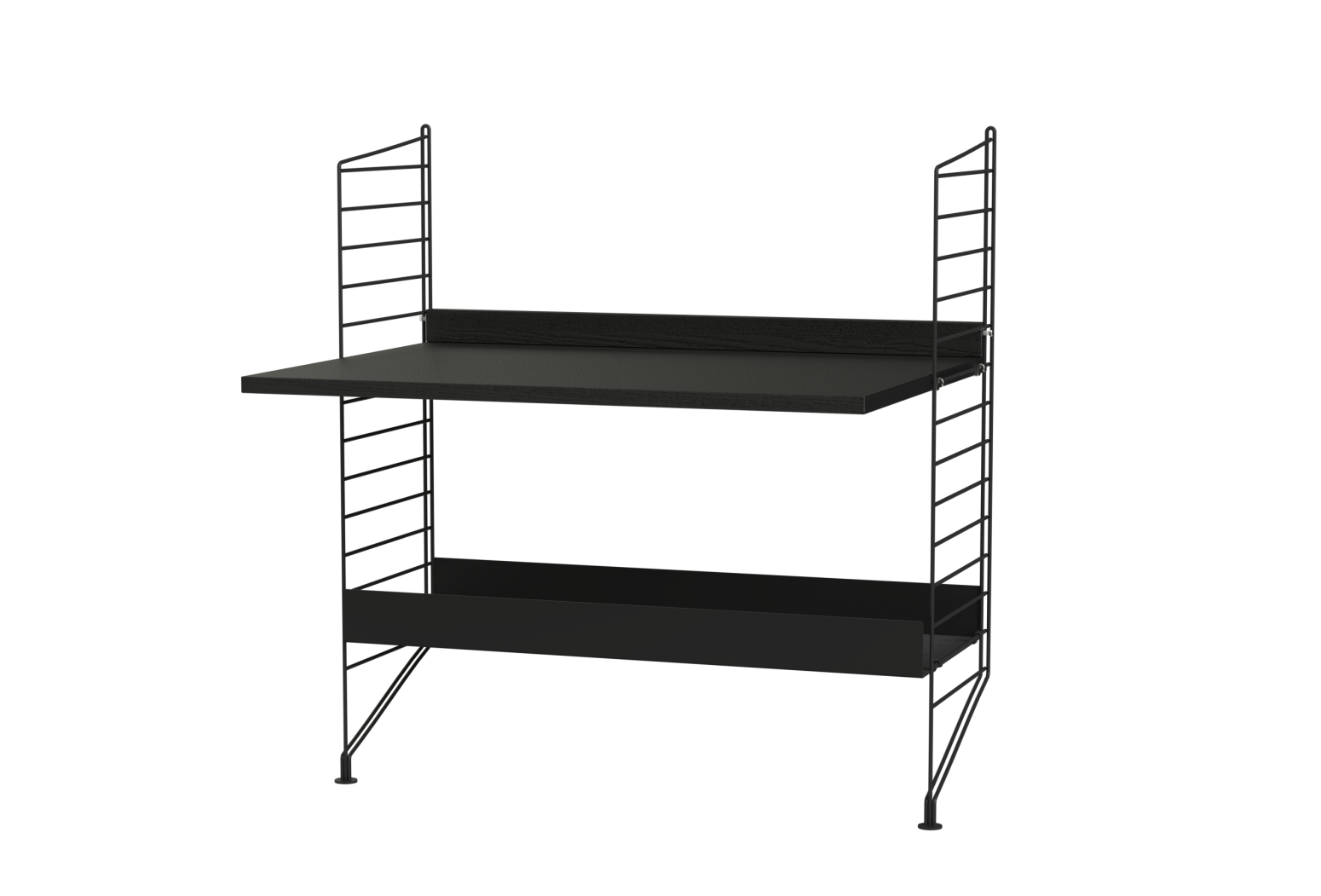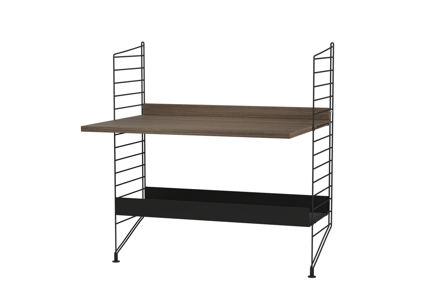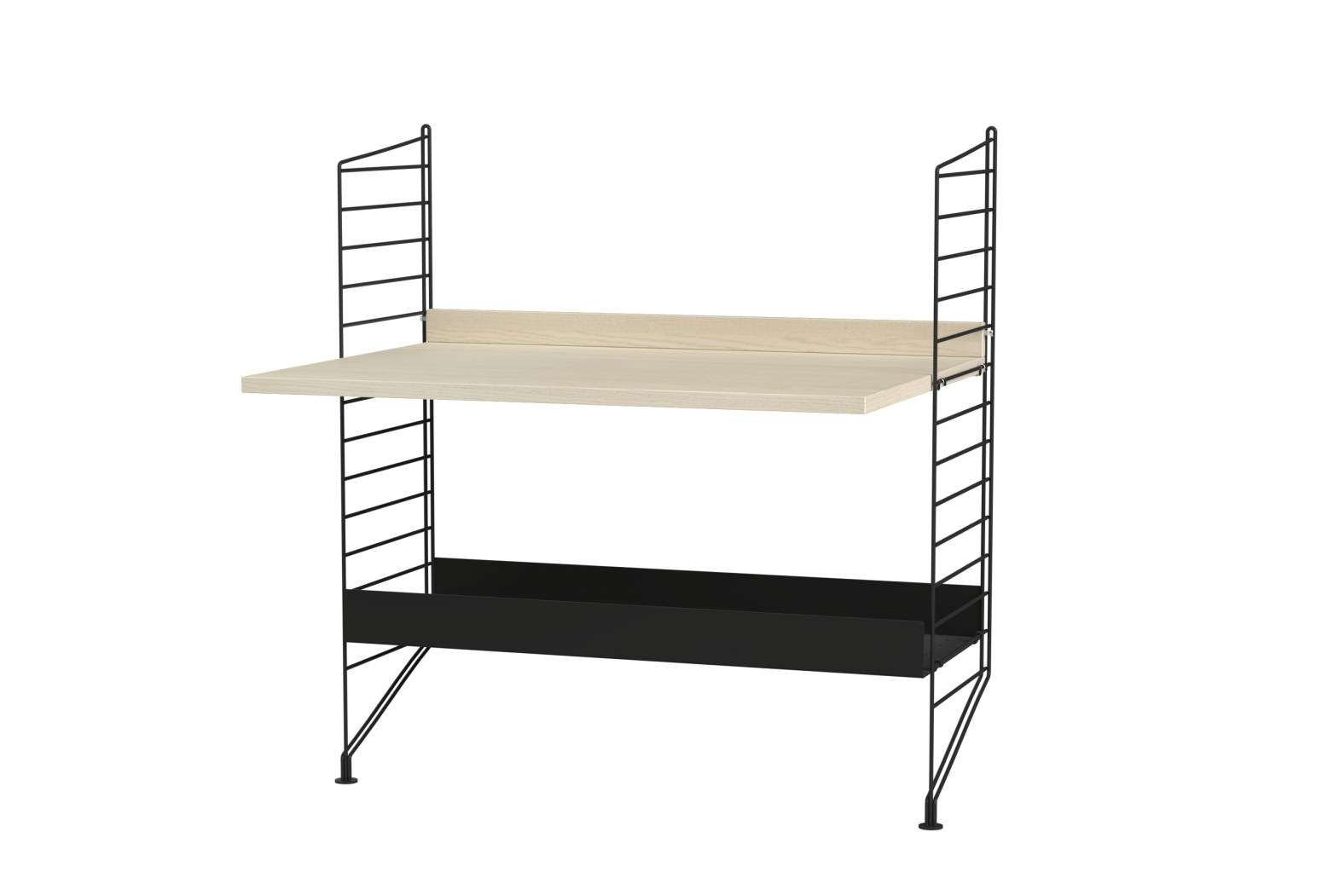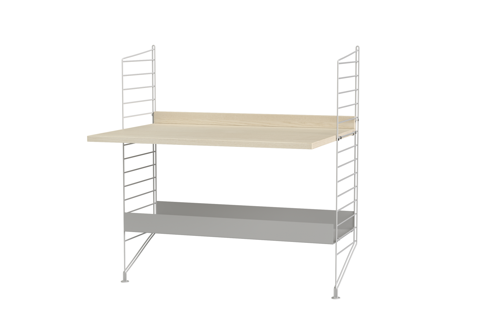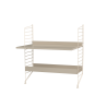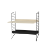 Prepared assembly from the String system. Complete set of elements according to the display and list. From the menu it is possible to choose the material design of wooden parts and the shade of painting metal struts.