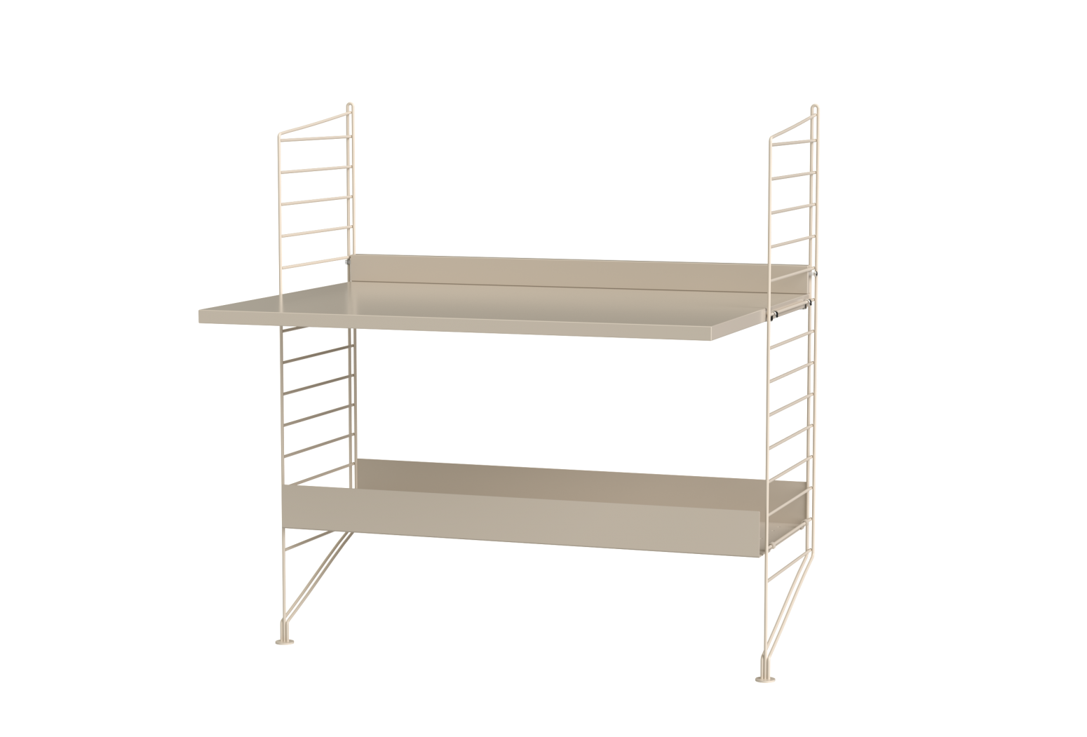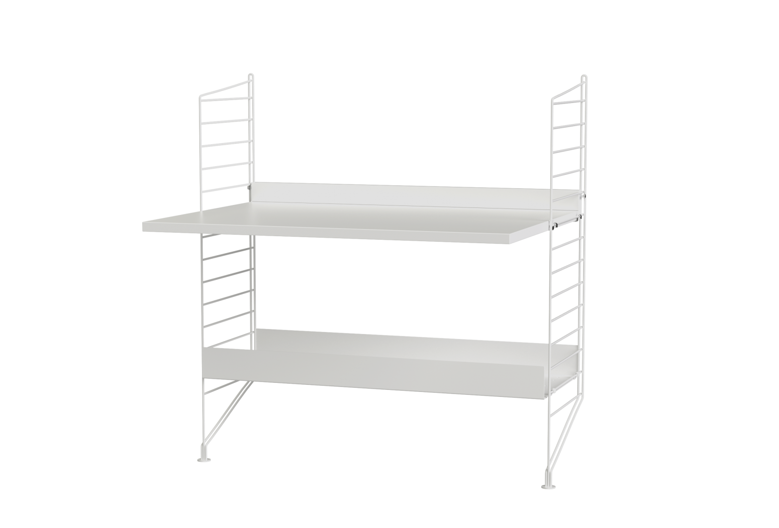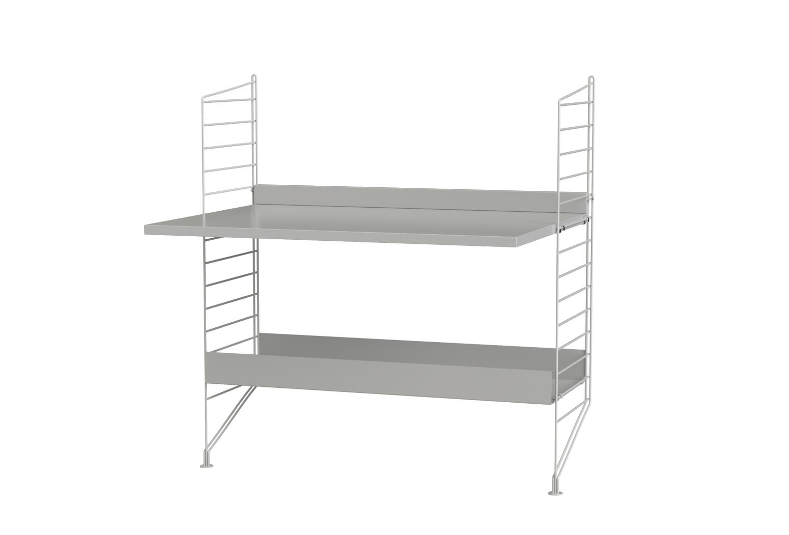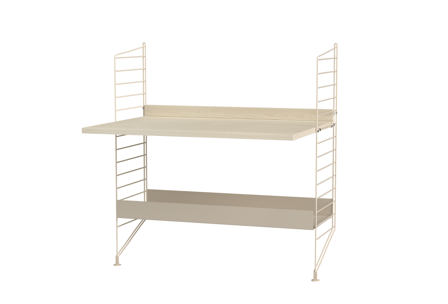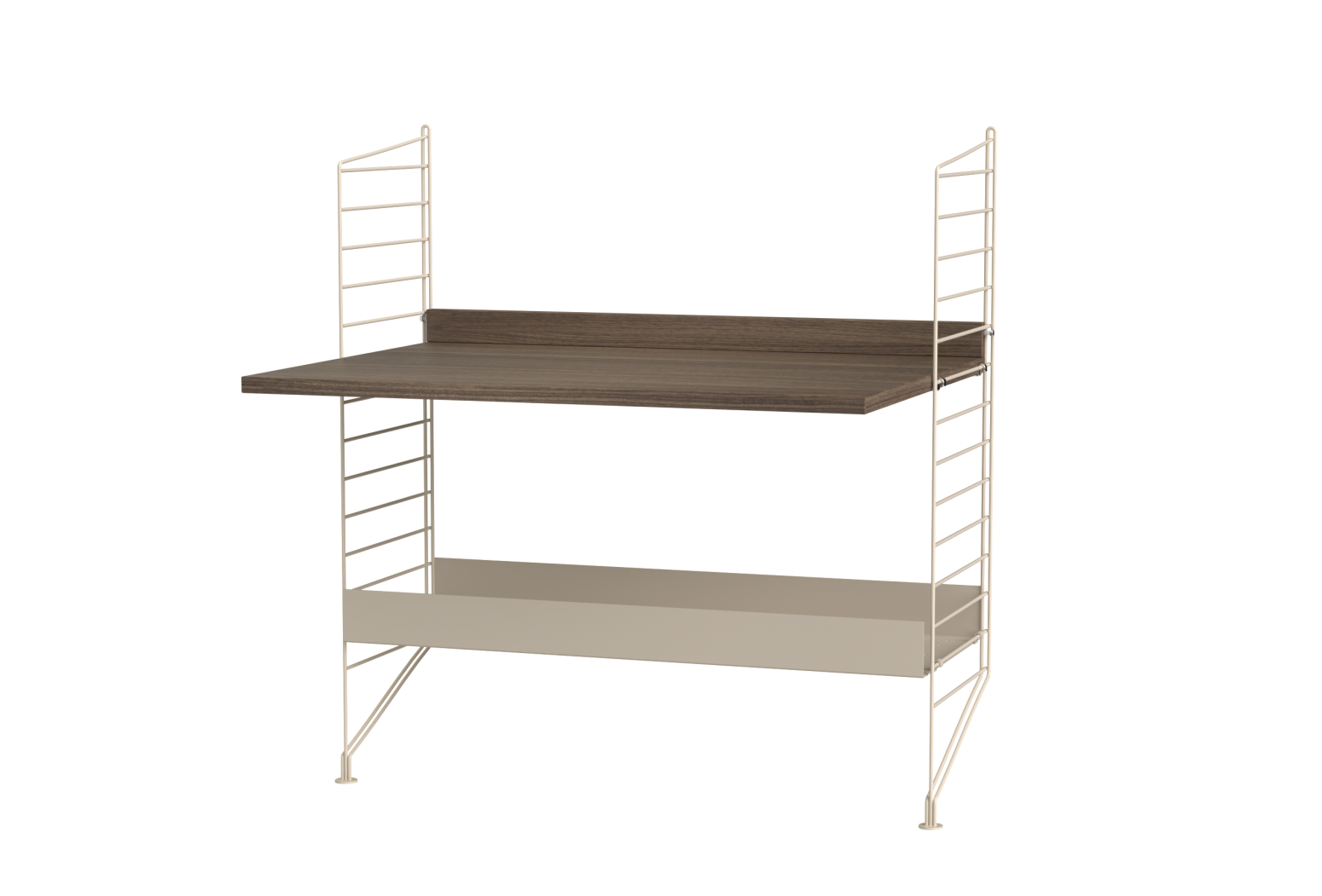 Prepared assembly from the String system. Complete set of elements according to the display and list. From the menu it is possible to choose the material design of wooden parts and the shade of painting metal struts.