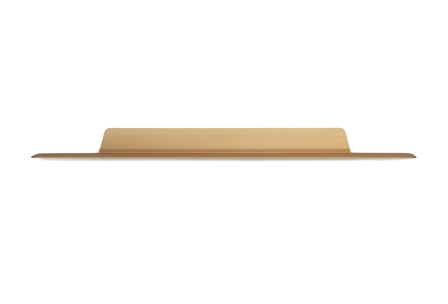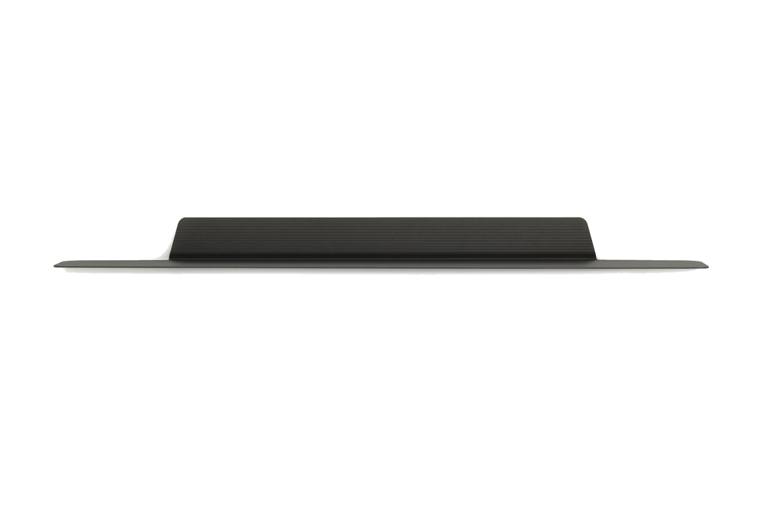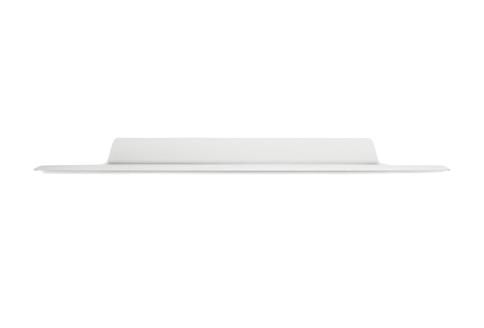 An asymmetric relationship between a horizontal and vertical surface creates the Jet shelf's architectural design and comes together as an attractive platform for storage and display. The profile has small incisions, which create the attractive grooved surface texture. The grooves also ensure that the items placed on the shelf are less likely to slide.
