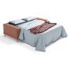 Mechanism: sofa bed with standard welded construction, leg height 13 cm. Filling: standard stretch polyurethane D.30 h 13 cm mattress. Seat: density 35 kg/m3. Backrest: density 24 kg/m3. Legs: wooden, available in various finishes. Optional: available in a version without a bed. Option to request a model with slats. Optional mattresses are available * (Mattress Topper Memory and Mattress 2 Foam only available for versions with welded mechanism). Upholstery: fully removable fabric.