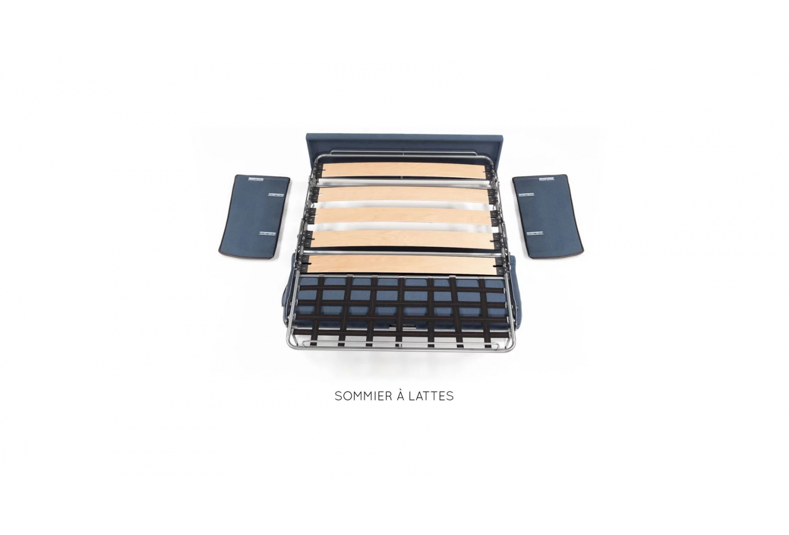 Mechanism: convertible sofa bed with standard electro-welded mesh, feet h 13 cm. Padding: standard stretch polyurethane D.30 h 13 cm mattress.Seat: 30 kg/m3 density. Backrest: 25 kg/m3 density. Feet: iron, in “Bronze” colour. Optional: available in the version without bed. Possibility to request the model with slats. Optional mattresses available *(Mattress Topper Memory and Mattress 2 Foam available only for the version with electro-welded mechanism). Upholstery: completely removable fabric. Partially removable leather. “Sled” foot variant (Lisbona2) available in various colours. See Foot of Cannes Model. Two complimentary Model D24 cushions in the same colour and category as the sofa. For leather sofas, free cushions D24 are not included.