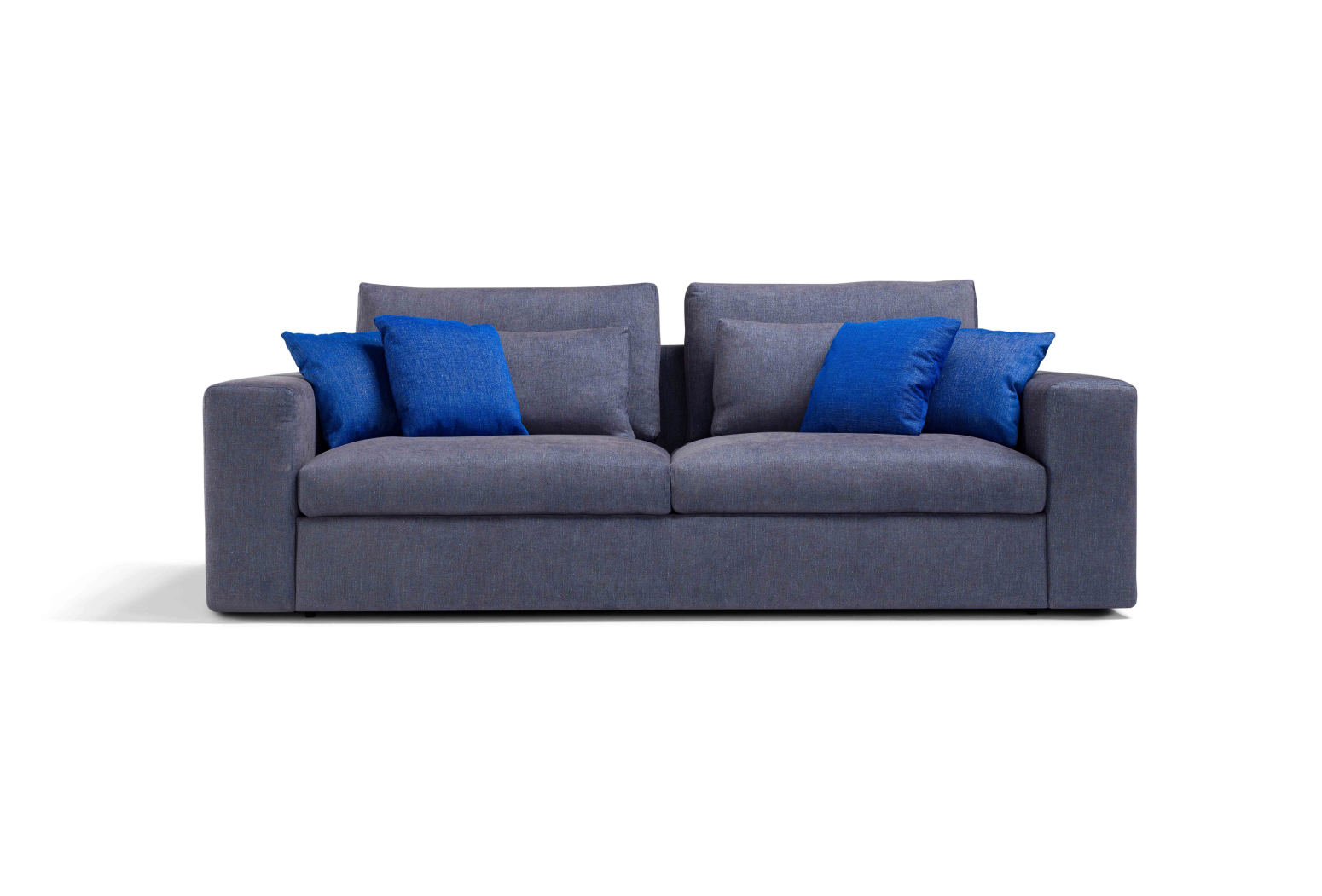 Mechanism: convertible sofa bed with standard electro-welded mesh. Padding: standard stretch polyurethane D.30 h 13 cm mattress. Seat: 35 kg/m3 density. Upper portion: memory foam. Backrest: feather blend. Feet: black plastic. Optional: available in the version without bed. Possibility to request the model with slats and wheeled mechanism. Optional mattresses available. Upholstery: completely removable fabric. Partially removable leather. 3 armrest models available.