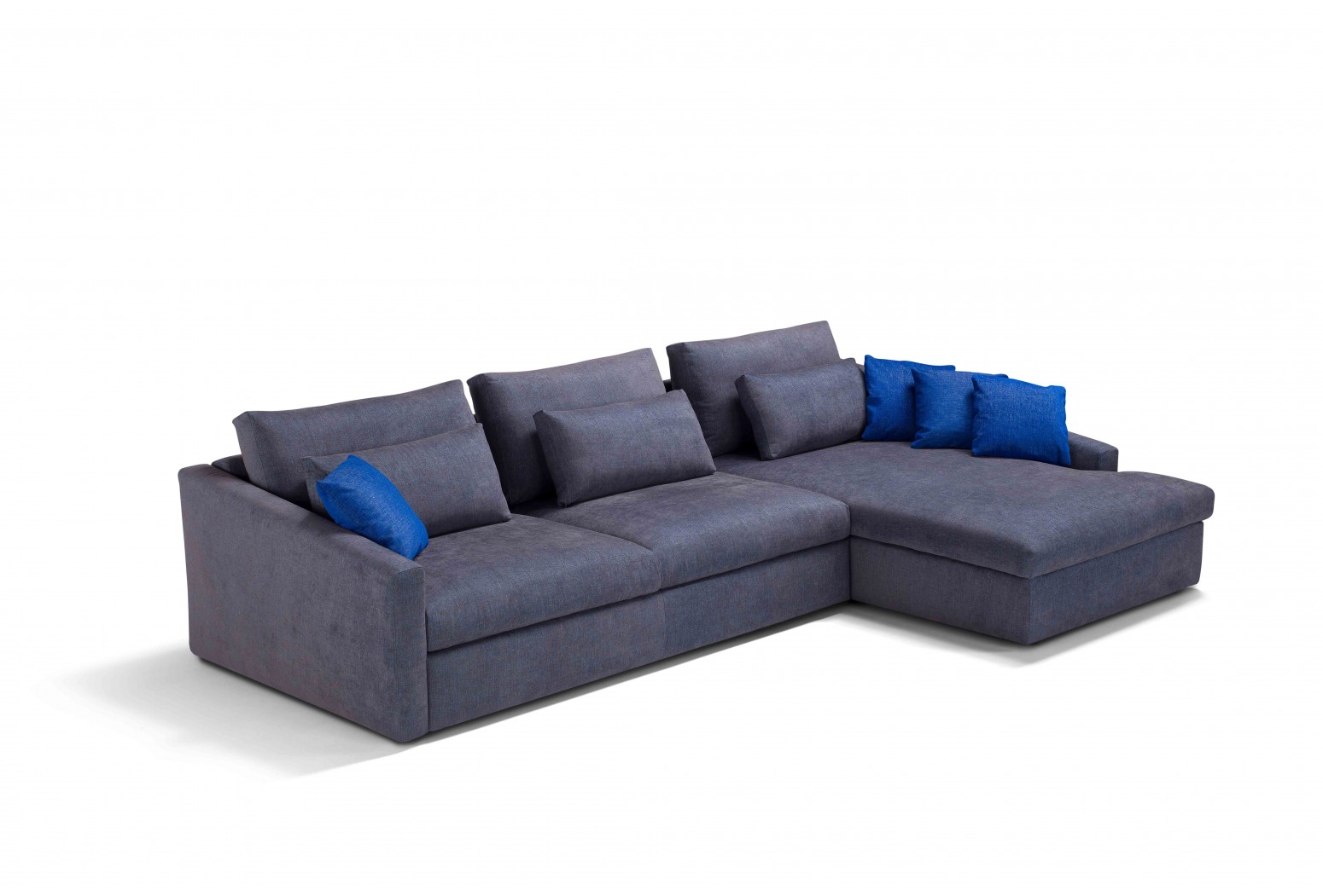 Modular sofa bed, customizable with corner, meridienne and chaise longue storage. Goose down backrests, memory foam seat and three types of armrests combine comfort and versatility.