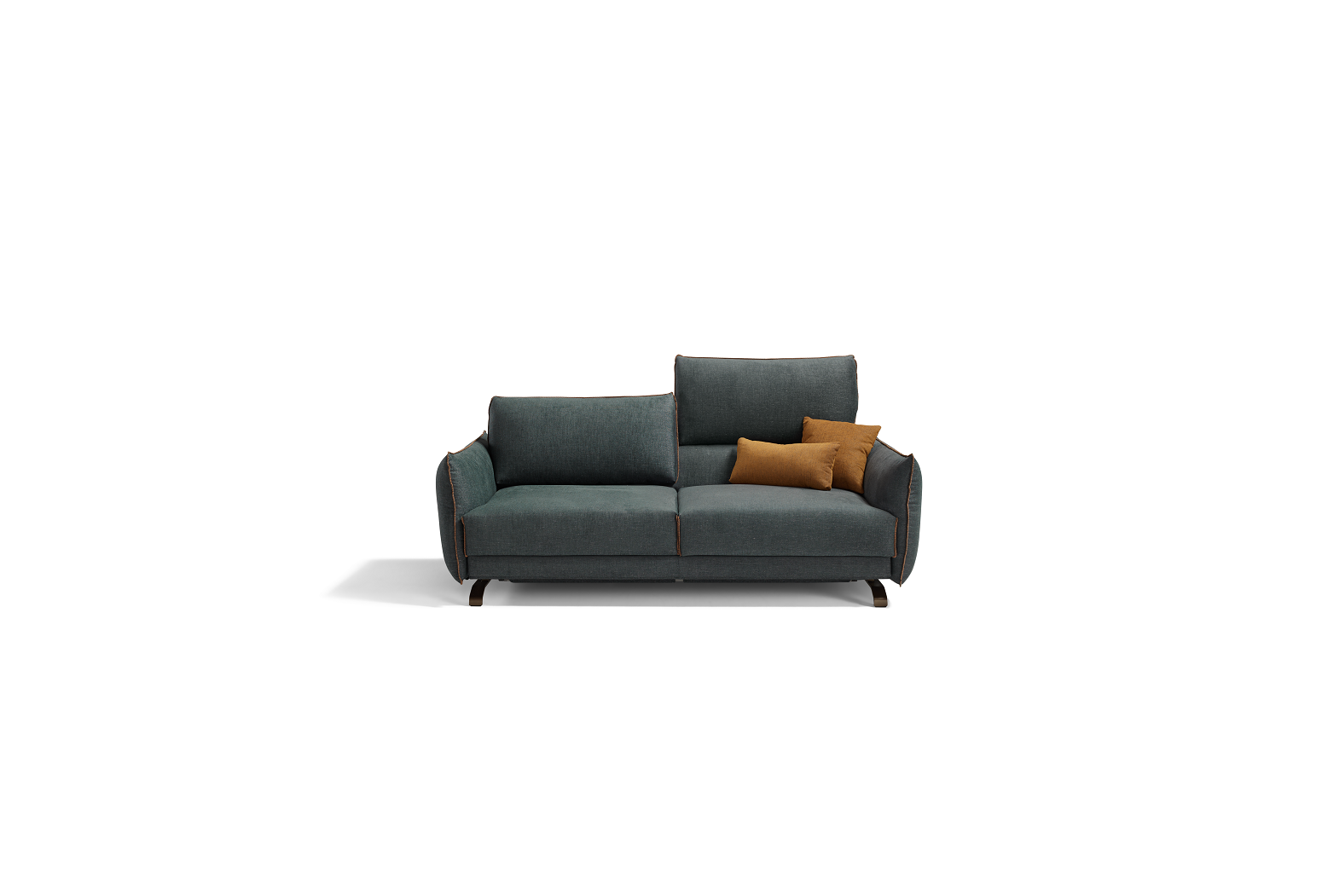 Convertible Sofa Bed with adjustable armrests and backrest, offering various configurations in terms of shape and size. Mechanism: standard electro-welded mesh. Structure: wood agglomerate, plywood and fir battens. Standard mattress: polyurethane stretch HR35 h 13 cm. Seat: polyurethane density 35 kg/m³. Backrest: polyurethane density 25 kg/m³. Feet: h 13 cm, available in different metal finishes. Option: wood slats mechanism. Upholstery: 100% removable fabric. Two complimentary cushions model D24 in the same colour and category as the sofa. Available in the version without bed.