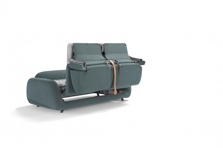Read moreConvertible sofa bed. Mechanism: standard electro-welded mesh. Structure: wood agglomerate, plywood and fir battens. Standard mattress: polyurethane stretch HR35 h 13 cm. Seat: polyurethane density 35 kg/m3. Backrest: polyurethane density 24 kg/m3. Feet: h 8 cm in wood available in various finishes. Option: wooden slats mechanism. Upholstery: 100% removable fabric. Two omplimentary lumbar cushions in the same colour and category as the sofa. Available in the version without bed.