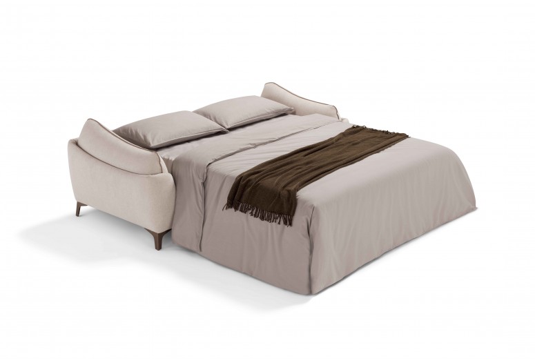 Flowing lines and visual harmony define this sofa bed. The 13 cm mattress, depth 210 cm, and foot height 13 cm create a balanced lightness.