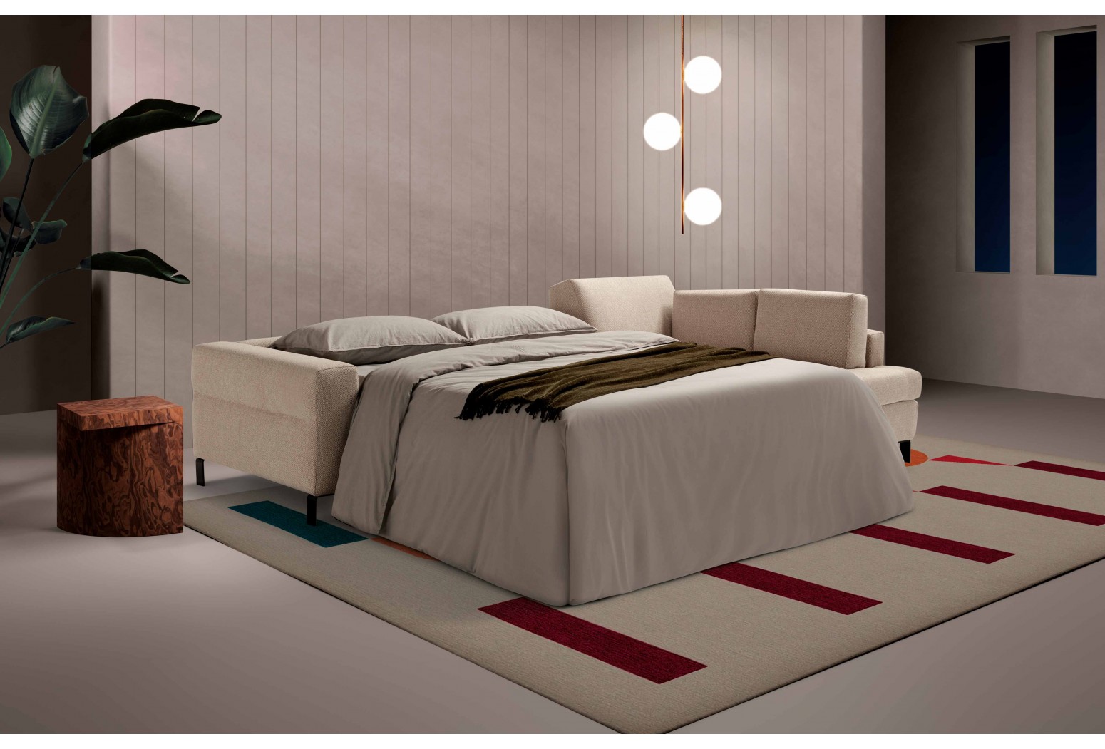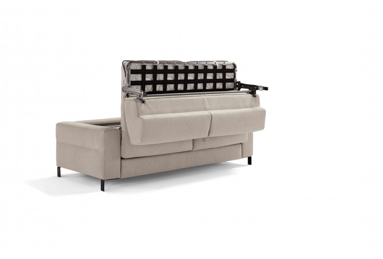 Sectional sofa bed with meridienne element. The 13-cm, 210-cm-long mattress provides prolonged rest in a design that combines functionality and style.