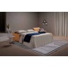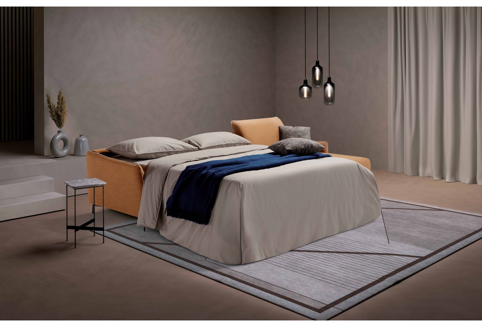 Sofa bed with 13-cm mattress, embellished with a functional chaise longue storage and a slender 13-cm foot.