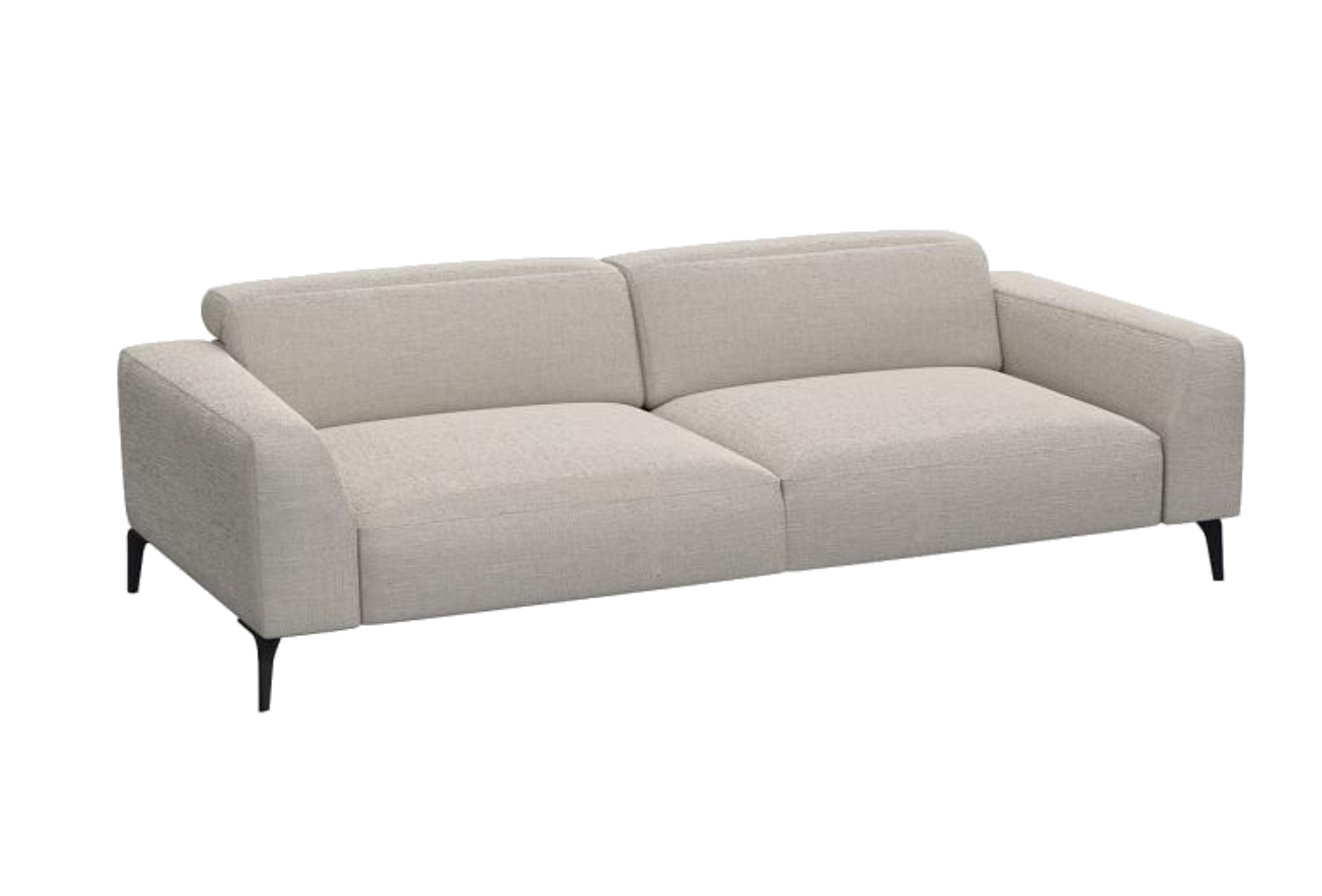 This sofa offers manually adjustable head rests for each seat for additional neck support. The back and seat cushions are fixed. The back cushions are made with hyper-soft foam and cut with special 3D technology to achieve the best comfort and durability.