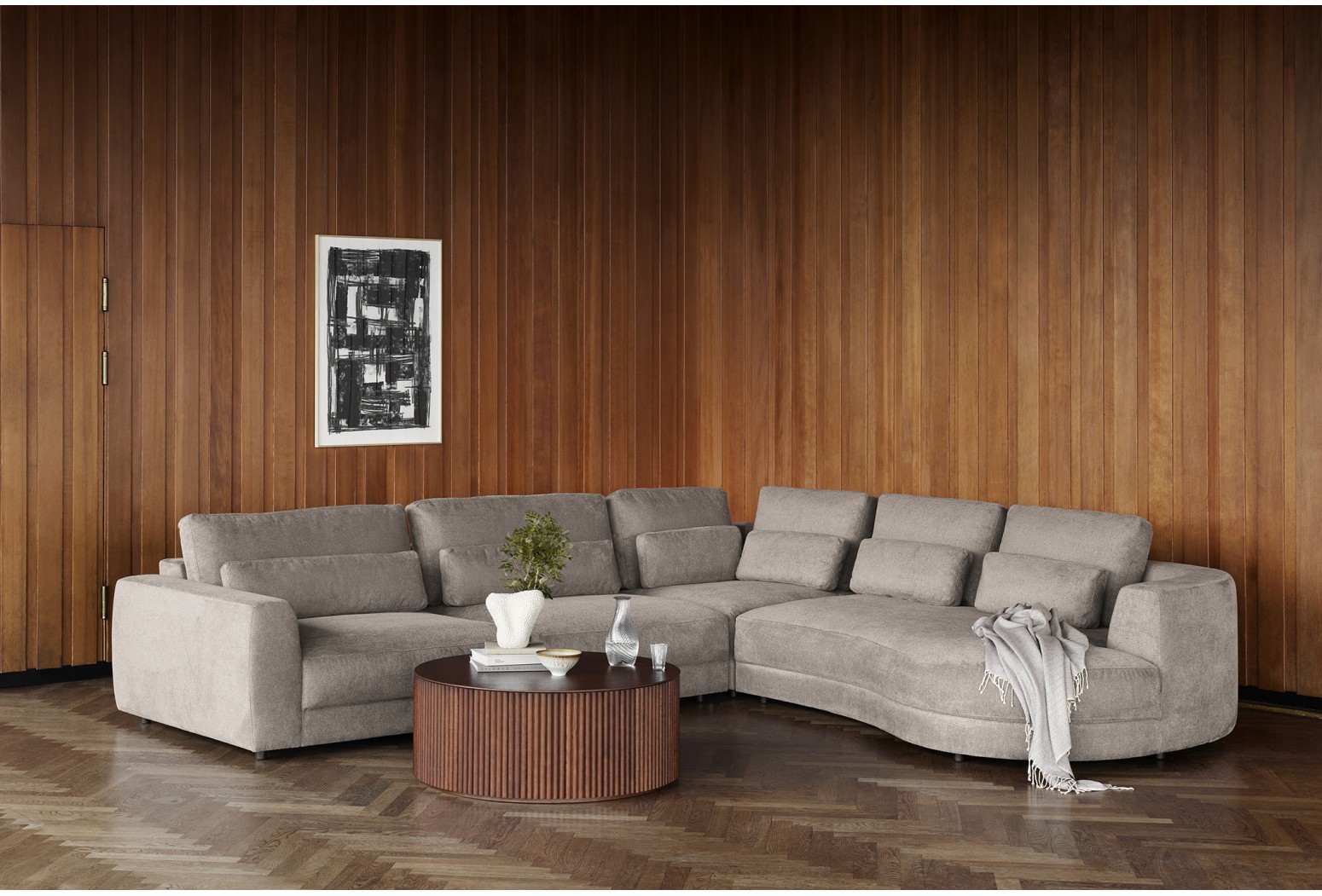 Petrone offers you the ultimate lounge feeling. And room for the family. The large proportions ensure multiple seating positions and it looks very stylish at the same time. Petrone is a modular system with many different modular options. You can choose between two different back comforts. One with fibre balls and one with a feather-foam mix. The seats are made with a foam core, wrapped with a feather-foam mix to create premium seating comfort. You can further combine fabrics and leather