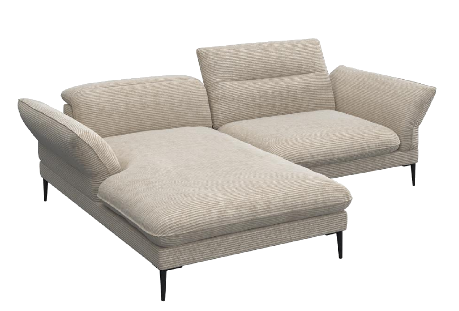 Salino is Italian inspired sophistication! This sofa offers manually adjustable head rests for each seat for additional neck support. The back and seat cushions are fixed. The arms have soft rounded shapes that contribute to the elegance of this sofa. The sofa is available with beautiful organic shaped black metal legs that fit the sofa perfectly.
