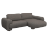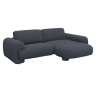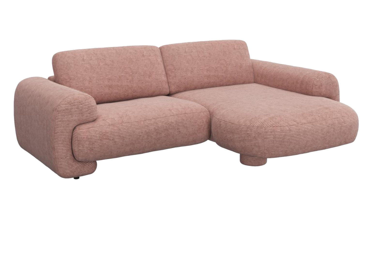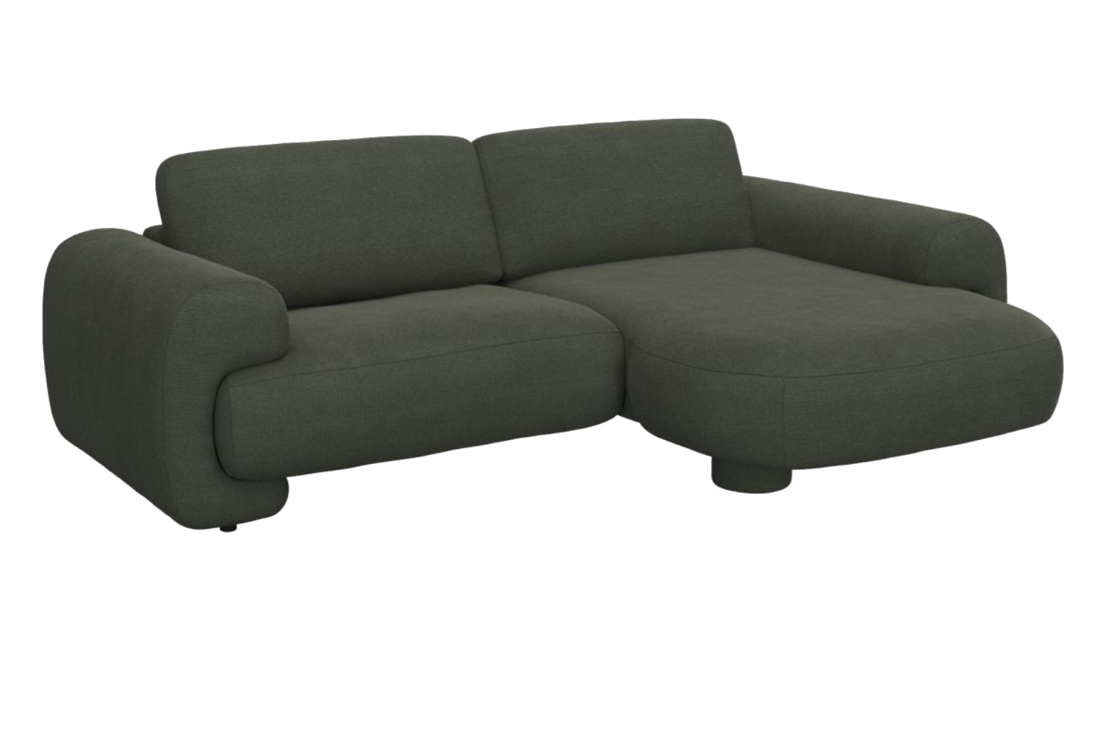 1,5 seater + chaiselong. Molino is a modern lounge sofa with a soft, organic shape. The elegant curves of the armrests, seat and the back gives a light and trendy look. Combinations with chaiselong or open-end section additionally have a chunky padded support leg, which also emphasizes the design. The combination of high-quality foam padding, good seating comfort and a nice design is a winner.