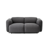 The name Swell is a reference to rising bread. Swell has a full shape, consisting of a robust padded back and seat and two curvy armrests. The stitching on the back and the seats divides the sofas into sections and completes the feel.
