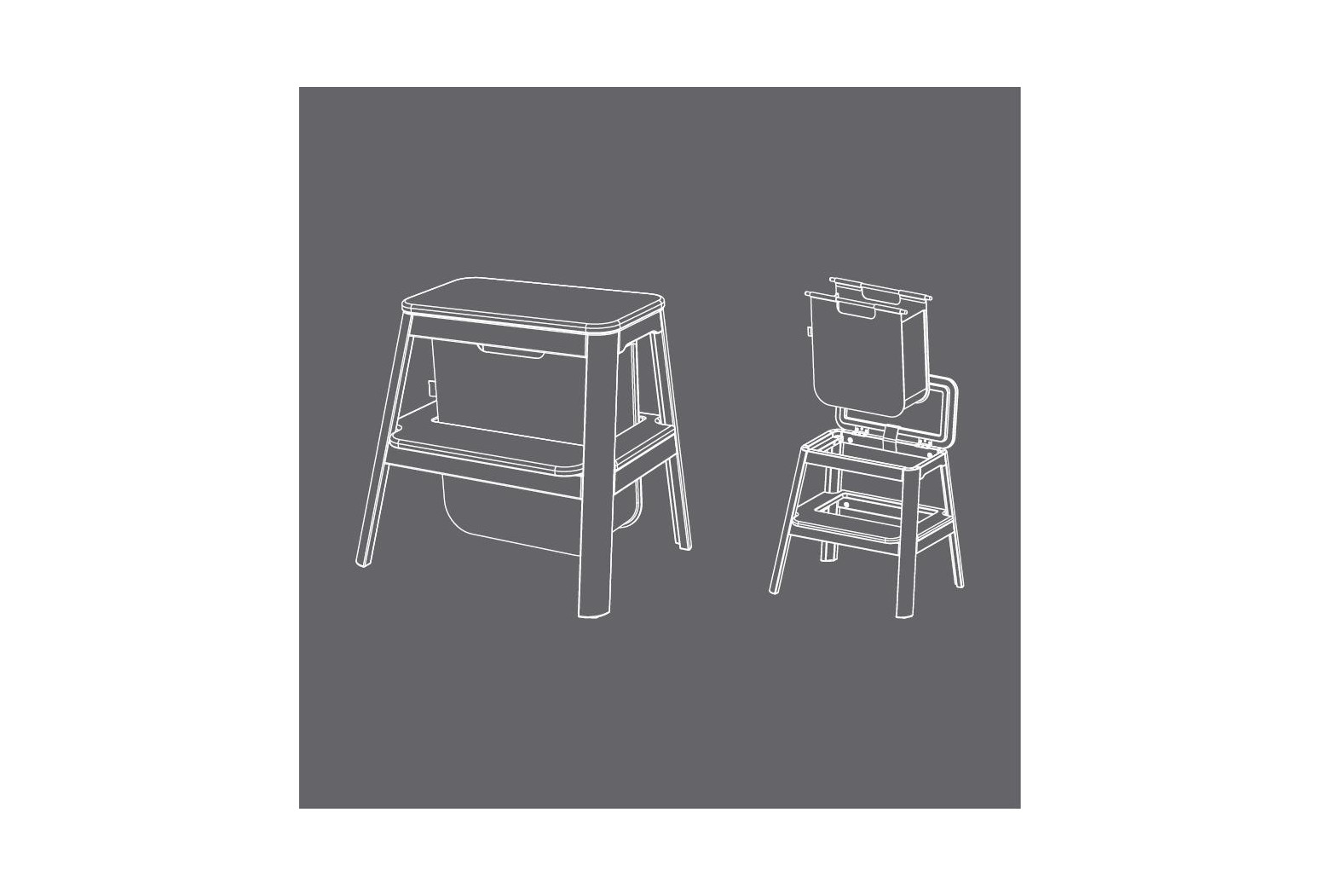 Step It Up holds a storage bag that can be taken out and used for grocery shopping, to store your recycled bottles, or other things that you simply need space to store. The new step stool encourages you to minimise the use of plastic bags and sort your recyclable waste, making it easier to take better care for the environment in your everyday life, while enhancing the functionality in our living space