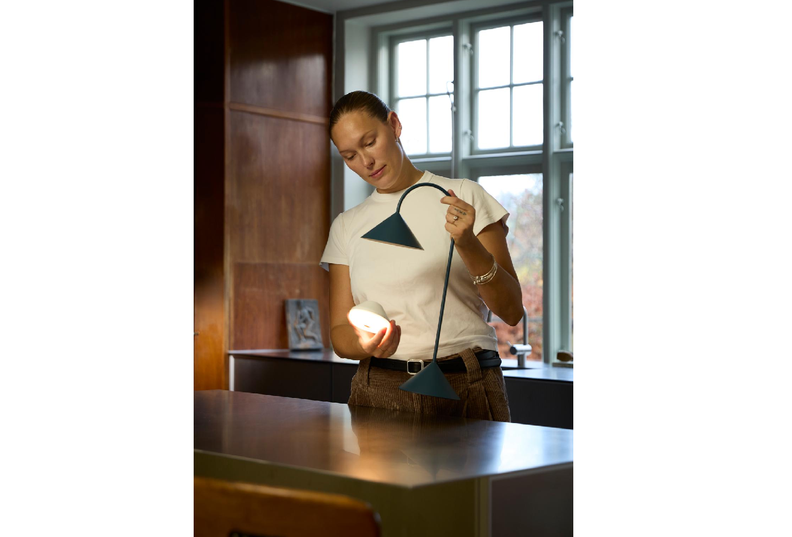 At its core, this enduring luminaire pioneers the revolutionary FRANDSEN ONE rechargeable LED light source, an innovation that allows the user to effortlessly remove the light source from the luminaire for recharging - replacing it with a fully charged spare Light Source. Grasp comes in two sizes and a sophisticated array of matte finishes - from the pristine allure of matte white and matt petroleum to the elegant, rich depths of matt black, matte beetroot and brass.