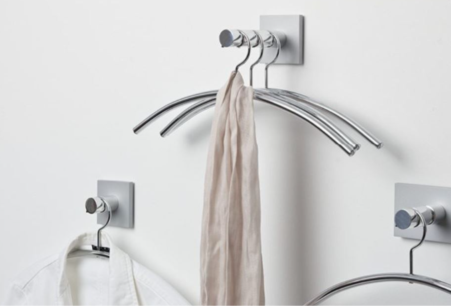 The Hangon wardrobe series comes in several different versions – the Hangon 1, 2 or 3. Their hooks are equipped with either one, two or three grooves, depending on the amount of coat hangers you would like to accommodate. Hangon Double is the wide version, offering double capacity.