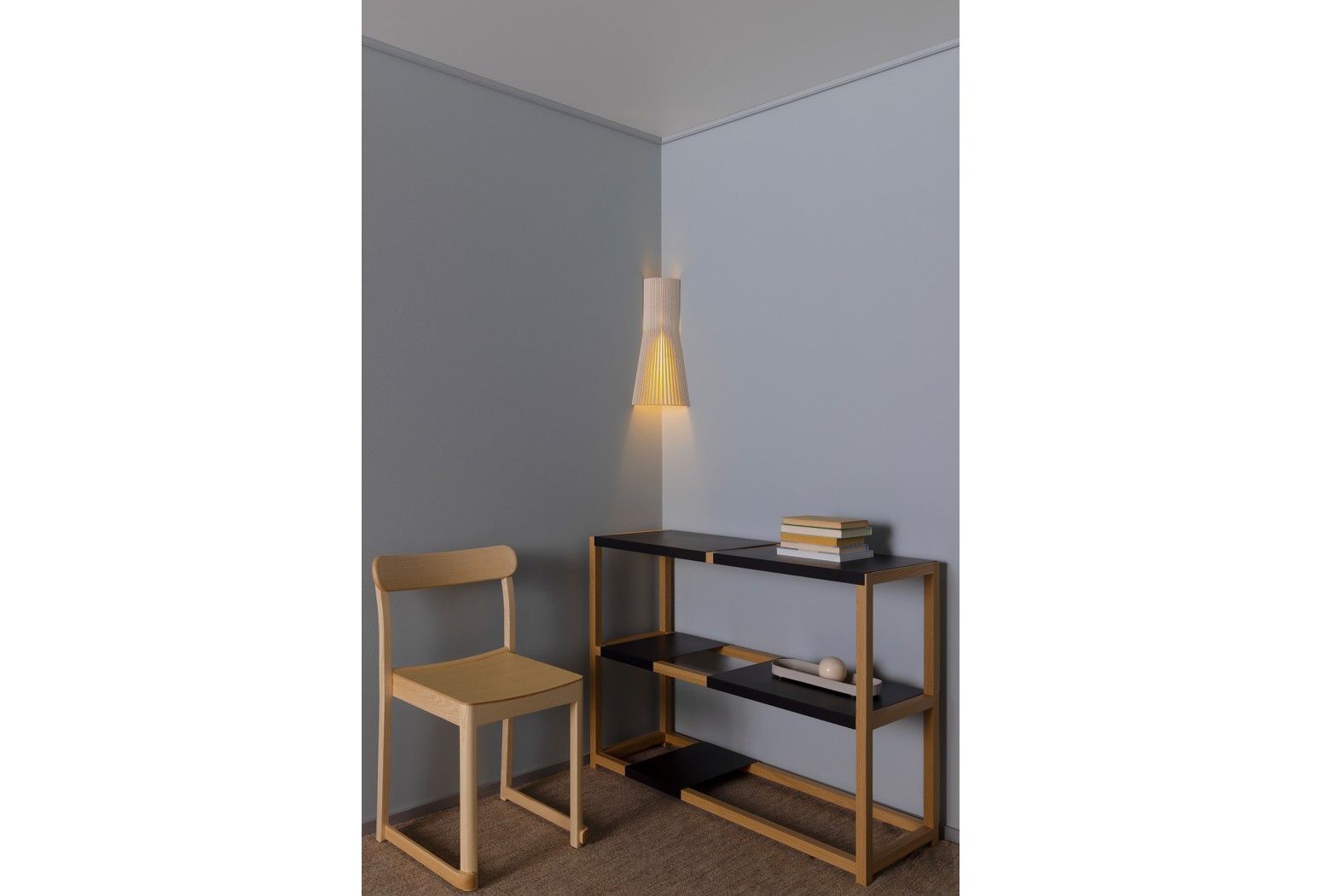 The Secto collection of design lams is designed by Finnish interior architect Seppo Koho. This wall light can be placed facing either upwards or downwards. Invigorates plain hallways and creates an inspiring mood. Handmade of PEFC-certified formpressed birch in Finland by highly skilled craftsmen. The wood provides a soft luminosity for atmosphere and appeal.